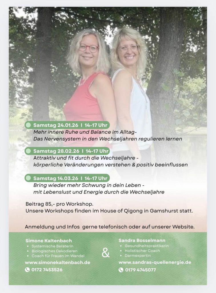 Viele Frauen spüren in dieser Zeit den Wunsch, bewusster für sich zu sorgen, neue Energie zu finden und wieder mehr bei sich selbst anzukommen. Genau dabei begleiten wir dich.