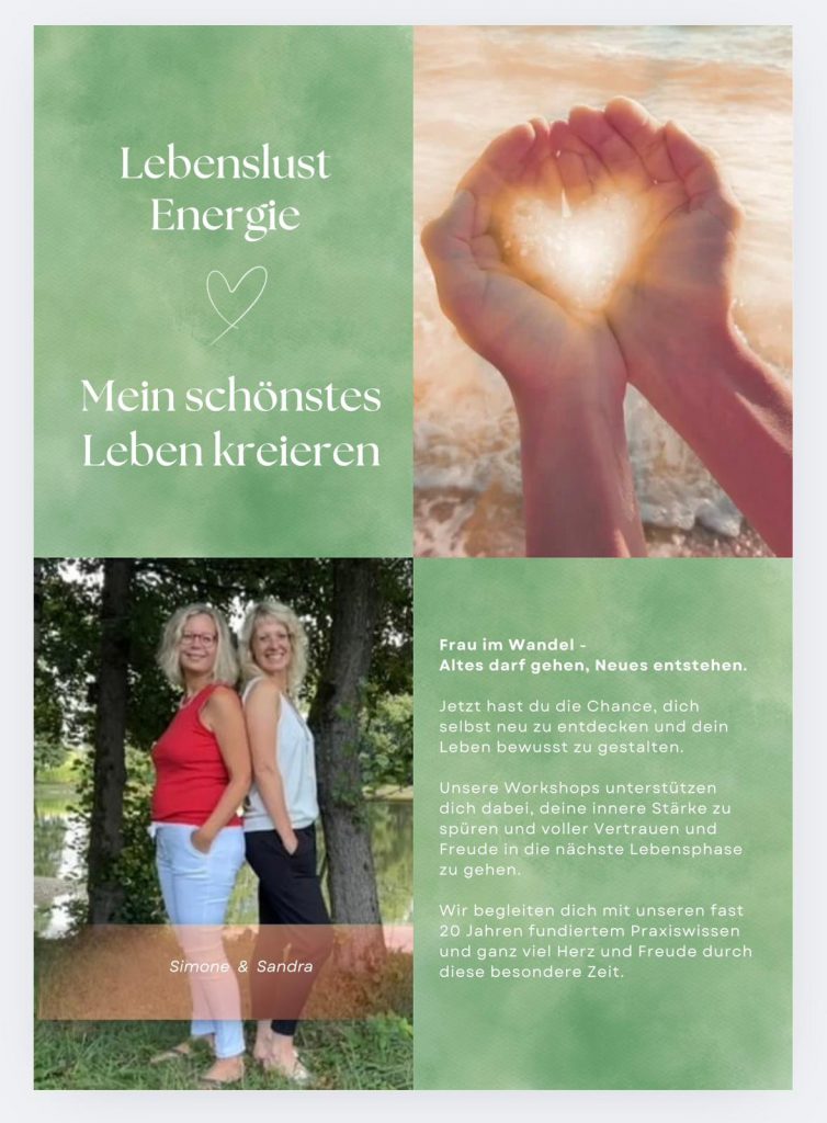 Wir – Simone und Sandra – unterstützen Frauen darin, ihren Körper, ihre Bedürfnisse und ihre eigene Kraft neu zu entdecken.